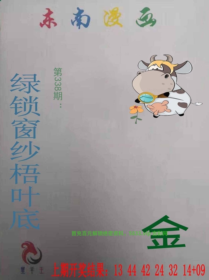 337期:今期生肖三八开,牛郎七夕鹊桥会。一五得志君留意,小注怡情乐开怀。七出三一有财现,八戒好色成正果。二三组合有玄机,三四组合有财气。 |